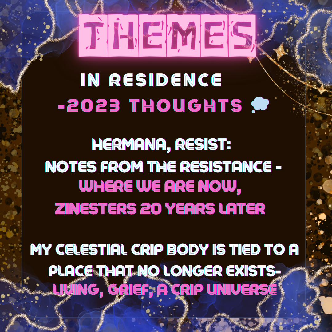 Published in 3 new zines: In residence, Hermana resist notes from the resistance & my celestial crip body is tied to a place that no longer existsFull size1080 × 1080