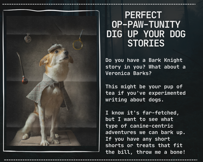 As a writer who loves dogs, I have always been fascinated by the complex social dynamics and communication methods of our furry friends (and all animals). If you’ve experimented writing about dogs playing amateur sleuth or ordinary pups turned private investigators, do I have a treat for you. Let’s explore the social dynamics and communication… Continue reading Do you have a Bark Knight story in you? What about a Veronica Barks? Jessica Bones?